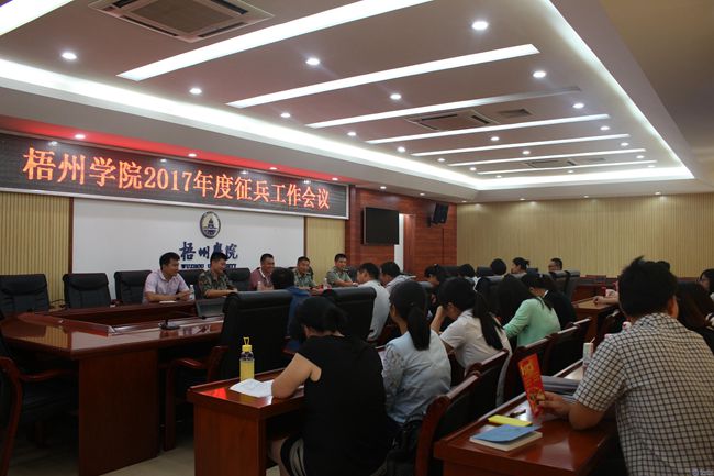 5月16日上午,2017年年度征兵工作会议于明理楼八楼第一会议室召开,万秀区人民武装部部长赵晓峰上校、刘钦平参谋,学校组织部及武装部部长黄健武、学校征兵工作站工作人员和各二级学院的辅导员参加会议。学校征兵工作站成员廖廷阳主持会议。