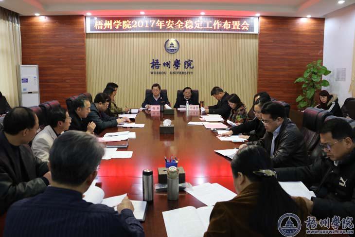 2017年要抓好几个方面安全稳定工作:一要抓住常规工作:抓好责任落实、抓好有效教育、抓好适时预警、抓好隐患排查、抓好末端处置和抓好综合治理。二要极度盯紧重点人群、关注重点部位、抓住重点活动、管住重点时段与敏感节点、突出重点内容。三要突破难点工作:防范应对突发暴力恐怖事件、高度重视师生意识形态工作、密切关注艾滋病的防治工作、重点整治校园涉毒违法问题、加强校内物流寄递物品管理、严密防范网络电信诈骗发生、全力遏制校园不良网络借贷蔓延。四要抓好三个专项治理,有效杜绝安全事故发生。
