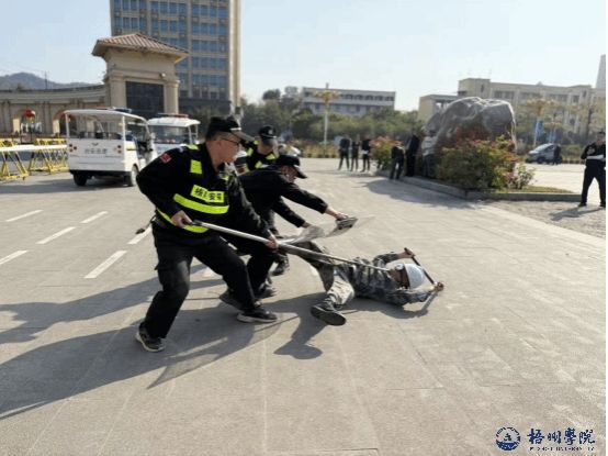 1月28日,保卫处在东大门举行校园安全应急演练,保卫处相关人员及校卫队队员参加。